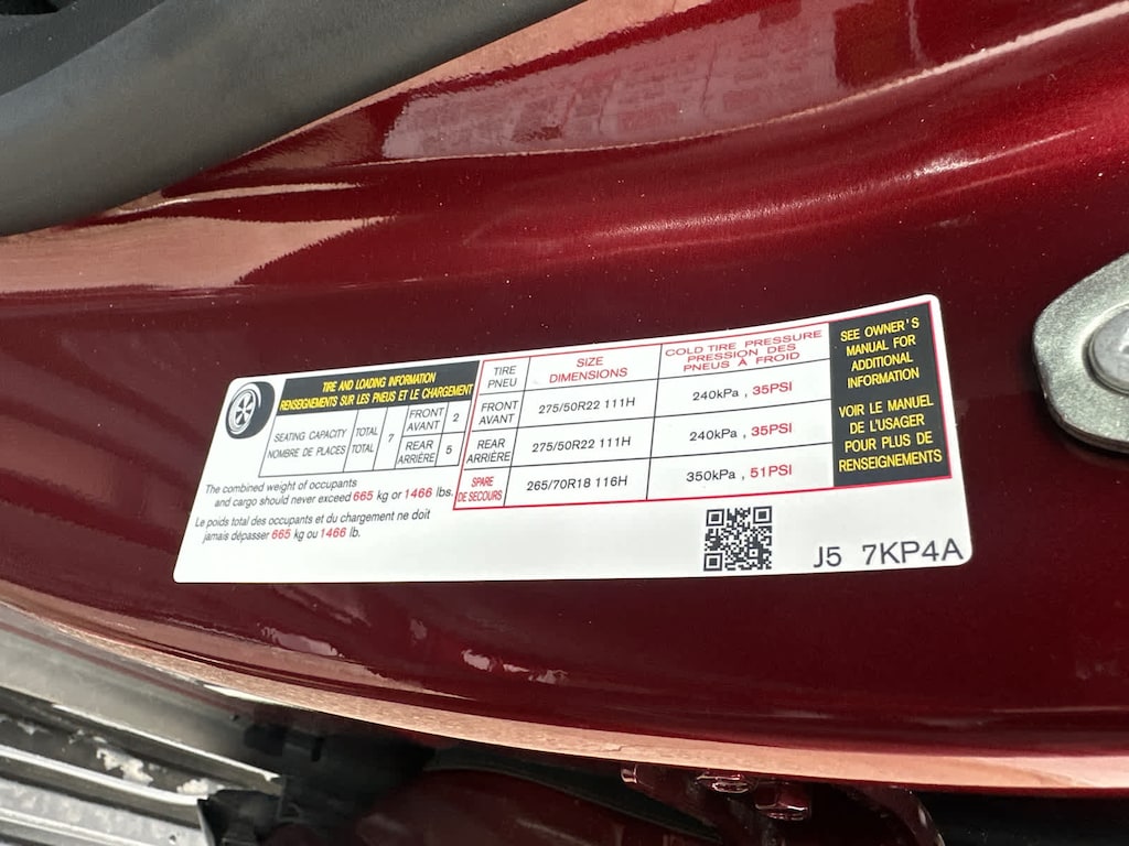 - Front tires: 275/50HR22.0