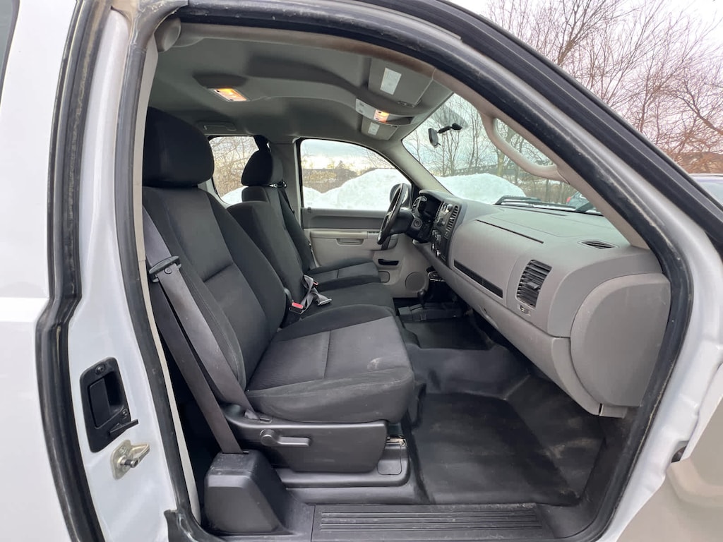WINDOWS, LOCKS AND MIRRORS, POWER deletes Remote Keyless Entry. Provides power driver and passenger front side windows with uplevel door panels on a base trim level vehicle. Includes RPO (DL8) outside heated power-adjustable manual folding mirrors, RPO (AU3) power door locks and RPO (UQ3) speaker system. C/K***43-53 models include rear door power windows and locks. ENGINE, VORTEC 5.3L VARIABLE VALVE TIMING V8 SFI FLEXFUEL WITH ACTIVE FUEL MANAGEMENT capable of running on unleaded or up to 85% ethanol (with gas - 315 hp [234.8 kW] @ 5200 rpm, 335 lb-ft of torque [452.2 N-m] @ 4000 rpm, with E85 ethanol - 326 hp [243.1 kW] @ 5300 rpm, 348 lb-ft of torque [469.8 N-m] @ 4400 rpm), aluminum block, DOOR LOCKS, POWER includes Remote Keyless Entry, DIFFERENTIAL, HEAVY-DUTY AUTOMATIC LOCKING REAR, CRUISE CONTROL, ELECTRONIC with set and resume speed, located on steering wheel, TRANSMISSION, 6-SPEED AUTOMATIC, AUDIO SYSTEM, AM/FM STEREO with seek-and-scan and digital clock (STD). Chevrolet Work Truck with Summit White exterior and Dark Titanium interior features a 8 Cylinder Engine with 302 HP at 5600 RPM*.
